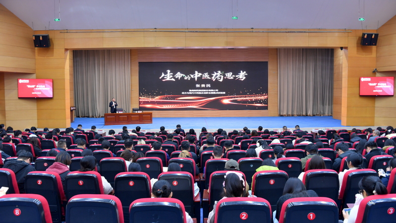座谈会后,张贵民作了题为《生命的中医药思考》学术报告。他从“天人合一”的中医智慧出发,结合荆防颗粒、首荟通便胶囊等现代中药研究成果,深入阐释了中医药在免疫调节、抗衰老、健康促进等方面的科学价值与实践路径。报告内容翔实、见解深刻,现场师生反响热烈。