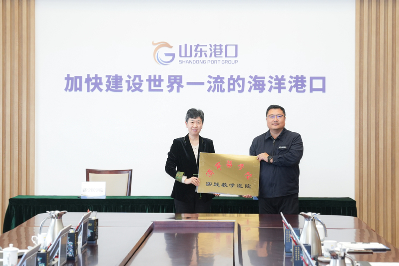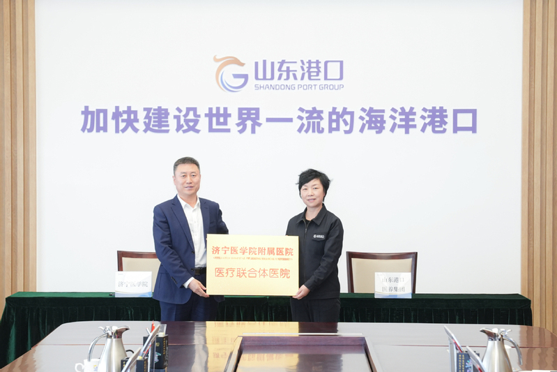 会上,学校与山东港口医养健康管理集团有限公司签署战略合作协议,并授牌“济宁医学院实践教学基地”、“济宁医学院附属医院医疗联合体医院”。